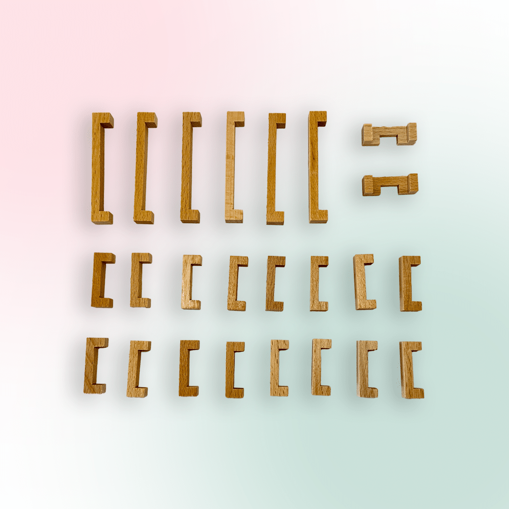 • The 24 Pieces Wooden Burr Puzzle is a classic wooden brain teaser that’s been reimagined for eco-conscious, hands-on learning.